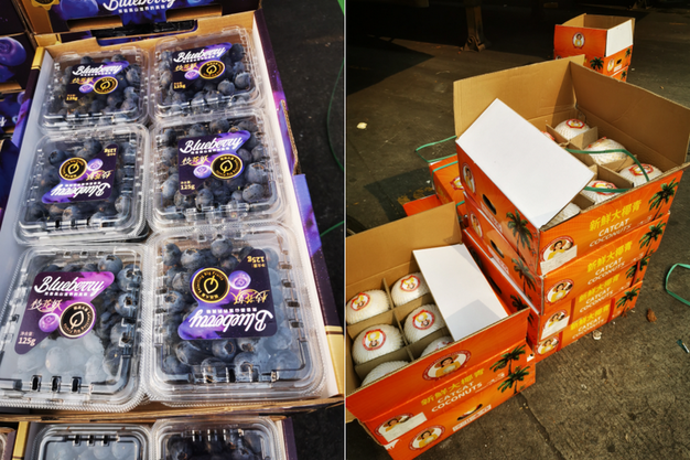 Izquierda: arándanos de Yunnan. Derecha: cocos jóvenes de Vietnam.