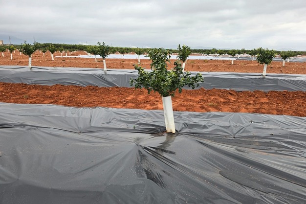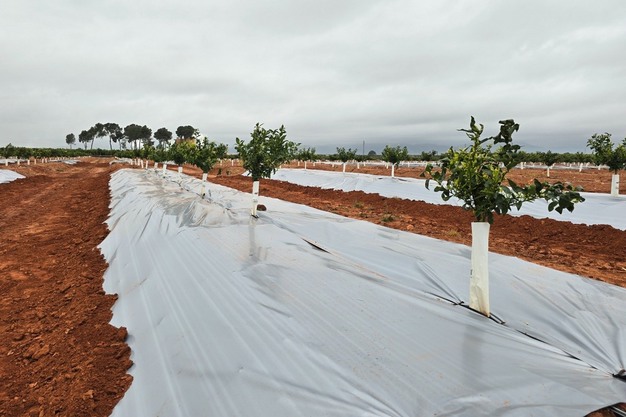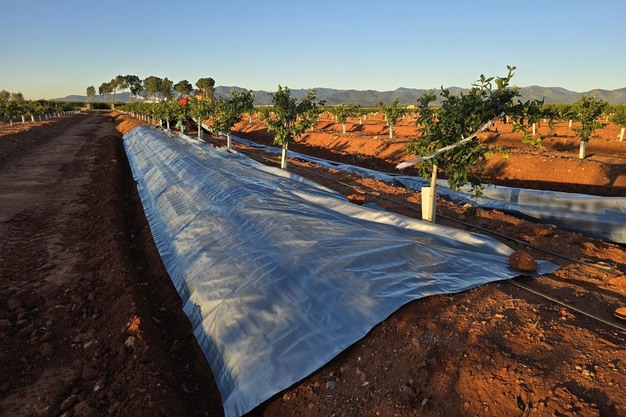 Además, las cubiertas metalizadas tienen efectos positivos en el microclima del cultivo, promoviendo un incremento en la temperatura del suelo, y reduciendo el estrés hídrico al mejorar la retención de humedad, lo que acelera el crecimiento y la producción de los cítricos.