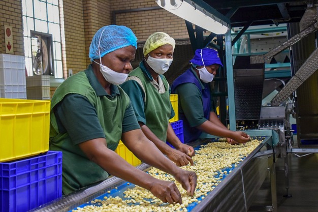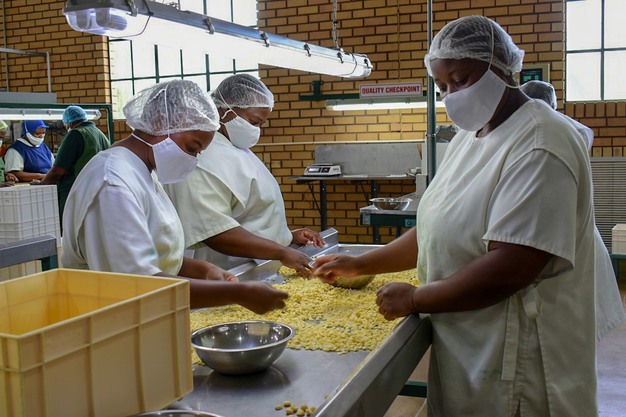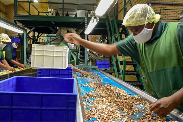 El pelado de las nueces se hace con mucho cuidado para evitar aplastar los granos, como comprueba aquí Wisani Baloyi.