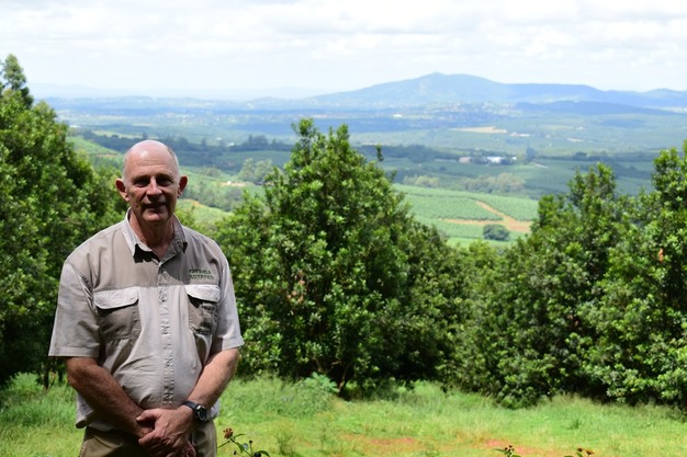 Bruce Milton en un campo de macadamias en Ratombo, Levubu.