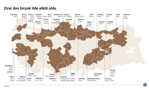 En Malatya, responsable del 85% de la producción de albaricoque de Turquía, se registraron pérdidas generalizadas. Ramazan Özcan, director de la bolsa de productos básicos de Malatya, señaló que casi todos los productos agrícolas, excepto el trigo y la cebada, sufrieron daños. Advirtió que los ingresos por albaricoque, que superan los 500 millones de dólares anuales, podrían desaparecer este año.