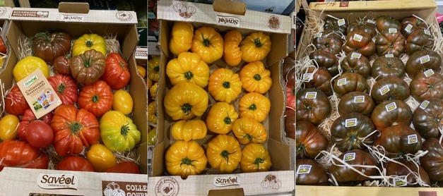 Lindner GmbH también ofrece cajas surtidas y de una sola variedad de la marca francesa de tomates Savéol y del tomate Chocmato.