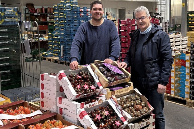 © Hugo Huijbers | FreshPlaza.esPhilipp Göbel y Clemens Götzinger inspeccionando las especialidades de tomate recién llegadas.