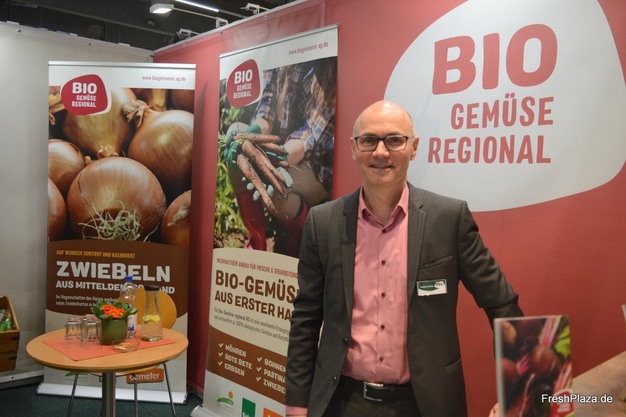 Steffen Mucha en el stand de Bio-Gemüse regional AG en la Biofach de Nuremberg de este año.