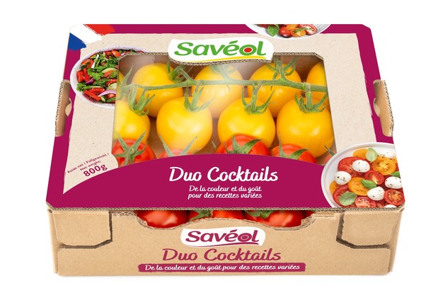 Ofrecer una gama diversificada de tomates en envases diferenciados y una gran variedad de formatos (a granel, en envases clamshell de 250 gramos, en bandejas de 1 kg, etc.) permite llegar a un abanico más amplio de consumidores con distintas preferencias en términos de sabor y precio. Para mejorar la competitividad y la visibilidad del sector nacional del tomate cherry, Savéol ha decidido participar, a través de la OPD Tomates et Concombres de France, en el lanzamiento de un envase de 250 gramos destinado a promover el origen francés. "La idea es promover el tomate cherry francés en un envase único y optimizar los costes. Queremos promover la distribución del tomate cherry francés y hacerlo más competitivo y atractivo que otros orígenes, aunque el precio sea algo superior debido a los costes de la producción francesa".