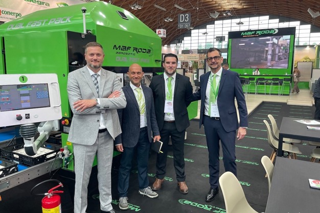 Durante Macfrut, celebrada la semana pasada en Rímini, el Grupo Maf Roda presentó una de sus innovaciones, la envasadora Dual Fast Pack, una innovación diseñada para ofrecer una solución a la escasez de mano de obra a la que se enfrentan cada vez más países. "La Dual Fast Pack ha sido diseñada para el envasado automático de fruta redonda como melocotones, nectarinas y manzanas. En comparación con los robots de envasado disponibles en el mercado, Dual Fast Pack va un paso más allá al ofrecer un valor añadido gracias a su sistema de orientación. Equipada con cámaras, detecta el eje, el tallo y el cáliz de la fruta, orientándola a continuación hacia el mejor lado, normalmente el más colorido, para un envasado óptimo y uniforme", informa Marco Masotti, ingeniero de ventas de Maf-Roda Italia.