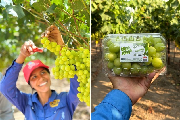 Izquierda: Maritza Moreno, de Grupo Alta, corta uvas Prime Seedless. Derecha: Variedad Autumncrisp en clamshell.