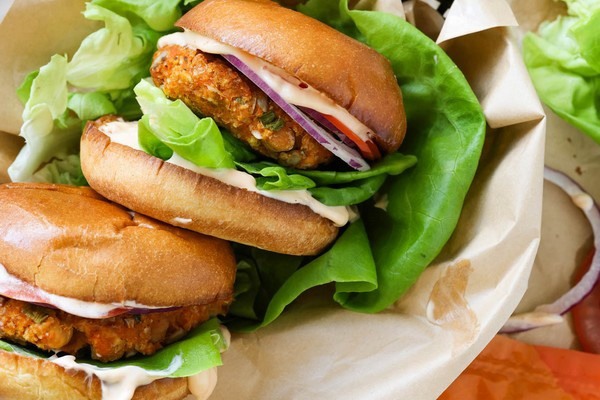 La marca también apuesta por las tendencias gastronómicas virales, como esta hamburguesa vegetariana de batata.