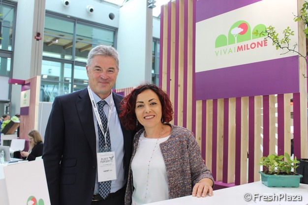 Peter Turner (director de Variety Innovation Asia & UE) y Maria Grazia Milone (directora de producción y ventas de Vivai Milone) en Macfrut 2025.
