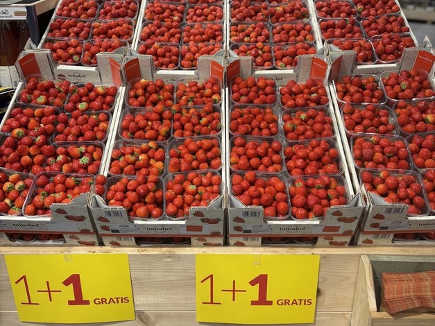 Para acompañar este pico de producción, la tienda lanzó una promoción válida solo el pasado fin de semana, "1+1 gratis por 4,99 euros", que tuvo el efecto deseado. "Fue un fin de semana de sol y las ventas habían estado aumentando a lo largo de la semana, por lo que era el momento adecuado para lanzar una promoción de este tipo, que se llevó a cabo con las fresas Tomabel Sensation de calibre B. Es una fresa un poco más pequeña de lo que estamos acostumbrados a ver, pero muy atractiva. Trabajamos un precio competitivo y la máxima frescura con pedidos diarios. Esta estrategia ha dado muy buenos resultados: más de 1.200 envases vendidos durante el fin de semana. Esto significa que, en retrospectiva, no nos equivocamos sobre la pertinencia de esta promoción".