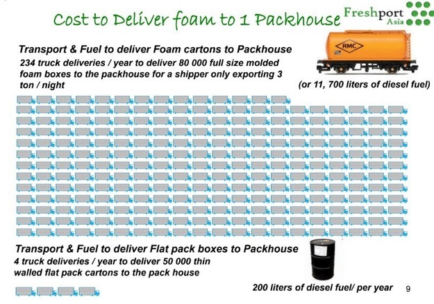 Además, las cajas de poliestireno tenían que desecharse al llegar al Reino Unido, lo que resultaba muy costoso.
