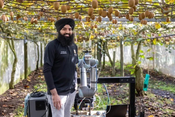 Un equipo de la Escuela de Ingeniería Te Kura Mata-Ao de la Universidad de Waikato (Nueva Zelanda) está desarrollando una tecnología robótica de bajo coste para paliar la escasez de mano de obra en la horticultura y reducir el desperdicio de fruta. Dirigido por el Dr. Ajit Pal Singh, profesor titular, el grupo de siete miembros —entre los que se encuentran los estudiantes de doctorado Hung Le Phan, Christoff Venter y Eva Prinz— ha obtenido dos candidaturas a los Premios Fieldays a la Innovación por su trabajo en apoyo de la industria neozelandesa del kiwi.