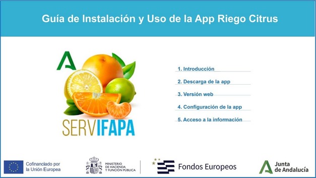 © Junta de Andalucía Esta aplicación se ha desarrollado en el marco del proyecto del Ifapa Red de Experimentación y Transferencia en Cítricos de Andalucía, cofinanciado por el Fondo Europeo de Desarrollo Regional (FEDER).