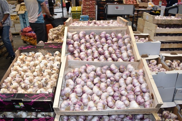 "En estos momentos, los orígenes del ajo en el mercado francés son Egipto, España, Francia y China", explica Patrick Flin, gerente de Paris Ail. "En comparación con la cosecha anterior, los precios han bajado notablemente. Este año, la producción francesa es ligeramente deficitaria en cuanto a volumen, debido a que se ha sembrado menos. En cuanto a la calidad, hasta ahora estamos satisfechos. En cambio, los volúmenes de producción española son inferiores a los del año pasado a causa de unas condiciones meteorológicas que han podido afectar a los cultivos".