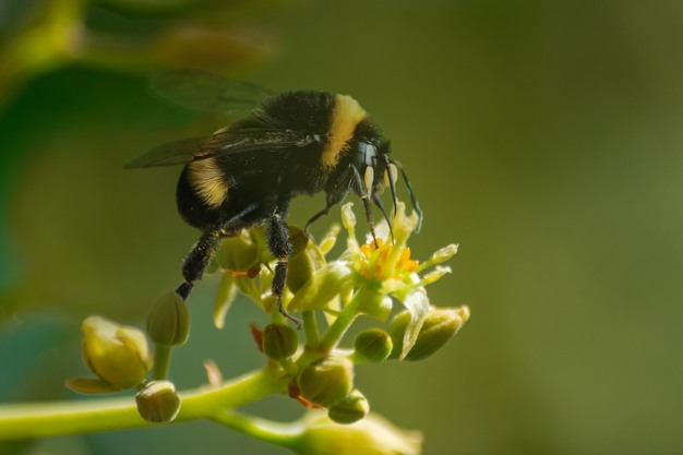 Los aguacateros necesitan la polinización de los insectos para que la fructificación sea eficaz. Cada flor se abre dos veces: primero para exponer las partes femeninas y luego para liberar el polen. Aunque las abejas y las avispas son polinizadores habituales en las plantaciones, tienden a preferir otras plantas con flores cercanas, lo que reduce su eficacia en los aguacateros.