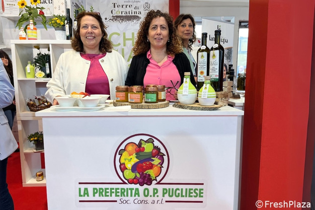 © Concetta Di Lunardo | FreshPlaza.esNicoletta Malcangi, agrónoma y responsable de La Preferita OP Pugliese, e Ilenia Malcangi. La organización produce fruta que también transforma en mermeladas.