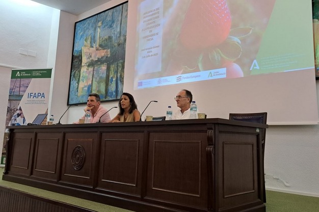 En la jornada también ha participado Berta de los Santos, coordinadora del área de Protección Vegetal Sostenible del Ifapa, que ha tratado la evaluación de la tolerancia de variedades de fresa a enfermedades fúngicas en suelos no desinfestados, mientras que Luis Miranda, del Ifapa de Huelva, ha evaluado las diferentes estrategias de inducción floral en distintas variedades de fresa (planta en maceta).