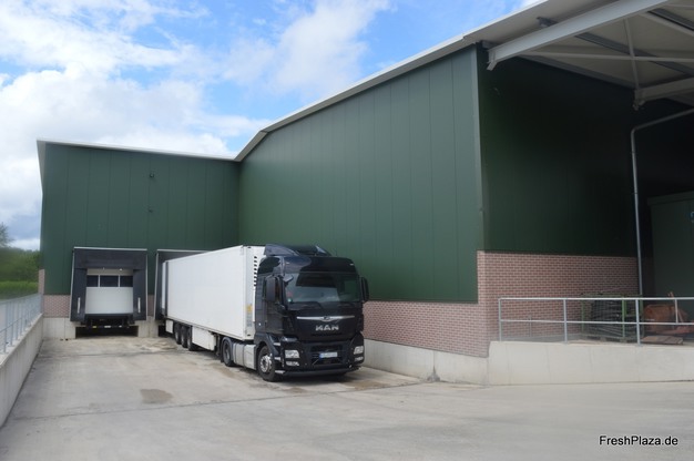 La nave de clasificación y almacenamiento, que se puso en funcionamiento en 2021 y está equipada, entre otras cosas, con un sistema de refrigeración por amoníaco y energía fotovoltaica. Debido a la refrigeración por vacío, la empresa tiene una gran necesidad de electricidad, pero la mitad se cubre con energía fotovoltaica, explica Stoffers.