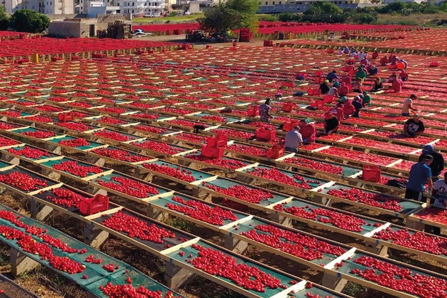 La campaña del tomate empezó el 10 de julio. La cooperativa espera procesar unas 2.000 toneladas de tomates frescos. En cuanto a las condiciones meteorológicas, Luigi Giangreco, responsable comercial de los productos semielaborados para la industria, señala: "Empezamos la campaña del tomate el 10 de julio. Estamos en plena campaña: esperamos procesar unas dos mil toneladas de tomates frescos".