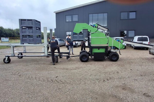 En la explotación de Herveld se utiliza desde hace tiempo una cosechadora de la empresa polaca Grunner. Según Erik Bunt, su funcionamiento parte de la misma base que la Pickstar 4.0, "pero esta última funciona con energía eléctrica y tiene una estructura un poco más sencilla. Creemos y esperamos que, gracias a ello, funcione sin problemas. Al fin y al cabo, cuantos más componentes tiene una máquina, más fácil es que se estropee. La máquina cuenta con baterías que se pueden cargar mediante un enchufe. Con la batería cargada al 100%, tiene una autonomía de alrededor de dos días. Además, la máquina está equipada con un generador con el que también se pueden cargar las baterías".