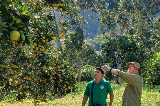 Peke van Beek (d), gerente de producto para cítricos, visitando a un productor
