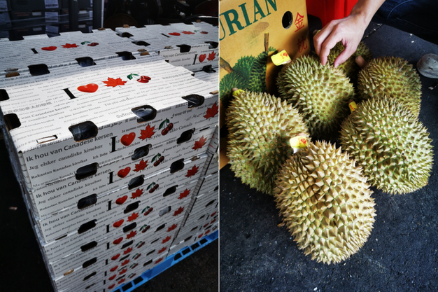Izquierda: durián canadiense. Derecha: durián tailandés