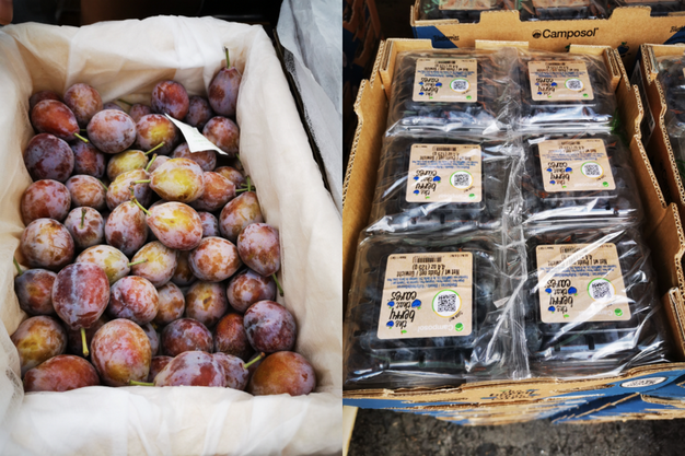 Izquierda: ciruelas de Xinjiang. Derecha: arándanos peruanos.