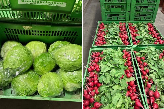 La lechuga iceberg y los rábanos de la cercana Knoblauchsland se compran a través de socios del mercado mayorista de Núremberg.