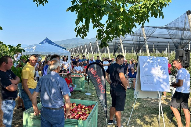 Más de un centenar de personas, entre productores y técnicos, participaron el 12 de agosto en Falicetto, en la provincia italiana de Cuneo, en el Lilibet Day, una jornada organizada íntegramente por Sanifrutta en la que se presentó una nueva manzana precoz, con un acto celebrado en la primera plantación comercial de la variedad. Se trata de Lilibet®, desarrollada por el CIV, Consorzio Italiano Vivaisti, y confiada en exclusiva a Sanifrutta para su producción y comercialización en Europa.