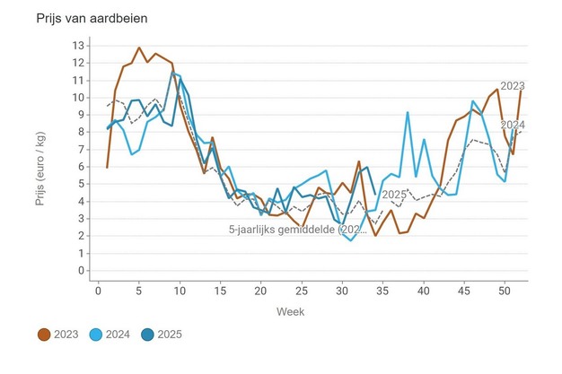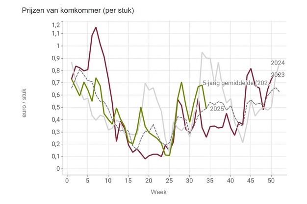 ¿Quieres ver los gráficos de los precios al por mayor? Puedes hacerlo en la página de estadísticas agrícolas del Ministerio flamenco de Agricultura y Pesca. Aquí puedes consultar todos los precios medios de las hortalizas de la semana 34.