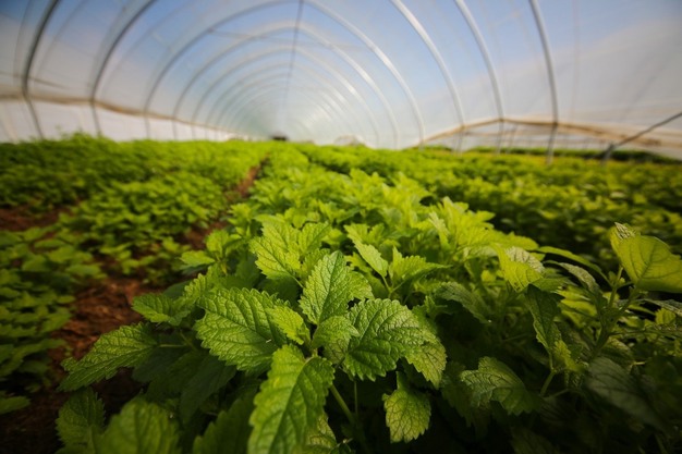 © Dreesen KräuterA finales de abril ya se pudo ofrecer el primer cebollino alemán cultivado en campo abierto. A partir de finales de septiembre, la cosecha al aire libre se irá acabando, tras lo cual se hará la transición a los productos importados del sur de Europa y del este de África. En la imagen: melisa en túnel de plástico.