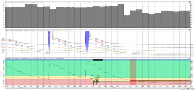 A este respecto, cabe mencionar el papel crucial que desempeña el punto de instalación en la gestión del riego de todo el sector. El resultado inmediato destacado por los viticultores fue la reducción de los volúmenes de riego y fertilización en un 10% y un 30%, gracias a intervenciones más específicas y ya no basadas en turnos fijos o evaluaciones empíricas. Además, los productores identificaron el panel de contenido volumétrico total como un gráfico de referencia en IrriMAX Live. Esto se debe a que el gráfico permite evaluar la evolución de la humedad total y comprender fácilmente, gracias a las líneas de gestión del riego, cuándo es necesario iniciar o detener el riego.