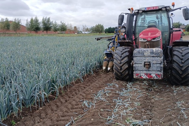 "Este año, la cosecha es un poco menor", prosigue el agricultor de Hooglede. "La variedad Krypton, que es la primera en llegar, se vio algo afectada por los trips. Ese problema ya se ha resuelto y la Maxton tiene un aspecto mucho mejor, a pesar de haberse quedado algo corta en cuanto a volumen debido al tiempo tan seco que hemos tenido. Son puerros más ligeros, por lo que la producción total se sitúa en unas 30 toneladas".