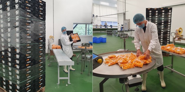 Hace varios años, la productora empezó a suministrar durante todo el año calabaza roja Hokkaido semiprocesada, tanto medias calabazas como cortada en cubos de 10 o 20 mm en sus propias instalaciones.