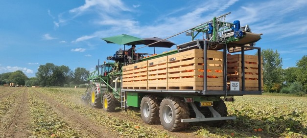 La empresa ecológica De Terp Squashpackers de Erichem (Países Bajos), se encuentra inmersa en la cosecha de calabaza. "Estamos muy ocupados con la recolección. Empezamos a mediados de agosto y continuaremos durante una o dos semanas más", afirma Rinke Robbers. "Hemos tenido una buena temporada de crecimiento, con unos rendimientos excelentes y buena calidad. La cosecha es hasta un 20% mayor que otros años".