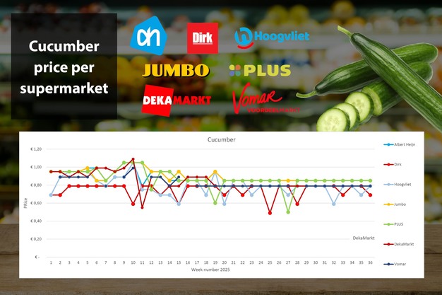 Los datos sobre precios proceden de Supermarktscanner.nl y se basan en los precios disponibles online en las tiendas web de Albert Heijn, Jumbo, Plus, DekaMarkt, Dirk y Hoogvliet. El precio es una media, incluyendo ofertas activas. Para la comparación de precios no se tiene en cuenta ni el origen ni la calidad, dado que la mayoría de supermercados no aportan estos datos en sus sitios web. Hoogvliet y Jumbo sí mencionan el país de origen. Por ello, no se descarta que en la comparativa se estén equiparando, por ejemplo, aguacates verdes con maduros, o pepinos españoles con holandeses.