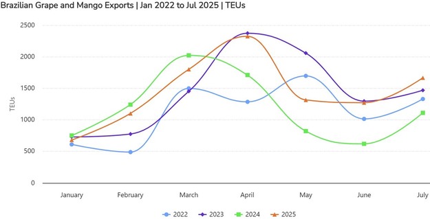 Las exportaciones brasileñas de mango y uva registraron un importante repunte durante el mes de agosto de 2025, consolidando una vez más al Valle del São Francisco como el principal núcleo productivo y exportador de fruta del país. No obstante, a pesar del incremento en los volúmenes, los productores se muestran prudentes ante el escenario internacional, especialmente en lo que respecta a Estados Unidos, donde los aranceles elevados introducidos durante la administración Trump continúan condicionando la dinámica comercial.