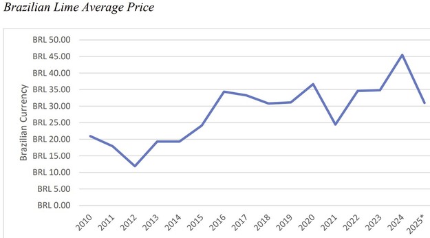 Brasil es uno de los mayores productores y exportadores de limas, y la variedad Tahití representa el 97% de la producción total. Es un sector constituido principalmente por pequeñas y medianas explotaciones, con cerca del 80% de las propiedades por debajo de las 25 hectáreas.