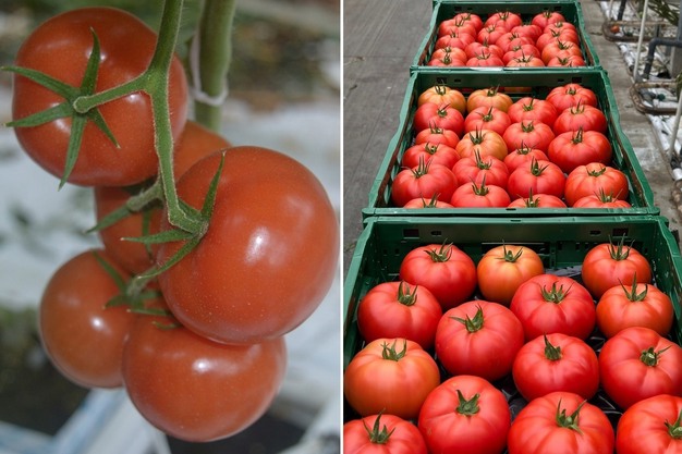 Tomates Sweeterno (izda.) y tomates corazón de buey de la variedad Falkland. Además de la cosecha principal a partir de la semana 26, los tomates de la variedad Sweeterno para el segmento temprano también podrían cosecharse a menor escala (unas 3,6 ha) a partir de la semana 17 de este año.