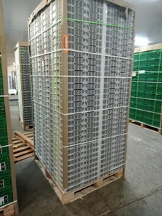 Derecha: arándanos para el transporte marítimo.