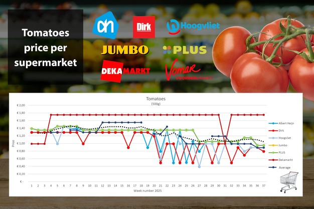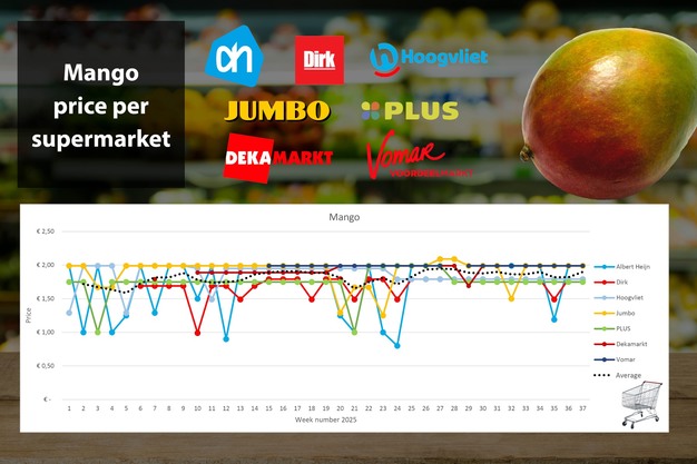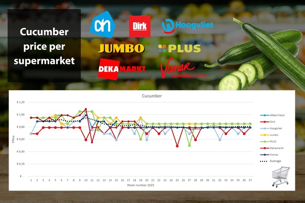 Los datos sobre los precios proceden de Supermarktscanner.nl y se basan en los precios disponibles online en las tiendas web de Albert Heijn, Jumbo, Plus, DekaMarkt, Dirk y Hoogvliet. El precio es una media, incluyendo ofertas activas. Para la comparación de precios no se tiene en cuenta ni el origen ni la calidad, dado que la mayoría de supermercados no aportan estos datos en sus sitios web. Hoogvliet y Jumbo sí mencionan el país de origen. Por ello, no se descarta que en la comparativa se estén equiparando, por ejemplo, aguacates verdes con maduros, o pepinos españoles con holandeses.