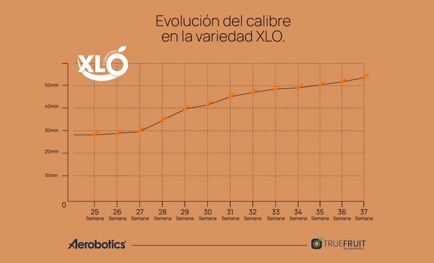 Como se puede comprobar, en la semana 37 (del 9 al 15 de septiembre de 2024), XLO ya había alcanzado el calibre comercial necesario. El crecimiento es uniforme, lo que permite anticipar su desarrollo y asegurar una fruta de calidad.
