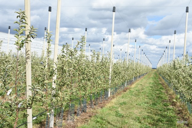 En lugar de excavar el suelo, solo se abrió una estrecha franja para los árboles jóvenes en el momento de la plantación. También se está experimentando con virutas de madera para proteger el suelo y suprimir las malas hierbas bajo los árboles, y en la explotación de VerKen Bio Deli-Vers se está probando a usar tréboles como sotobosque. Se evita el control químico de las malas hierbas para proteger la vida del suelo. "Hemos hecho una apuesta sobre cuál de los dos métodos acabará dando mejores resultados dentro de unos años", ríe Kris.