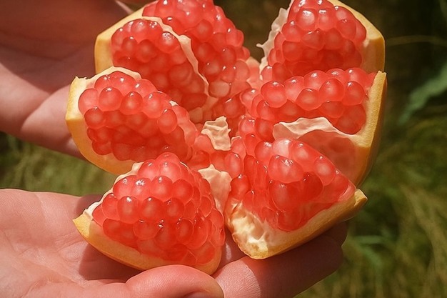 Sin embargo, sigue siendo difícil estimar los volúmenes producidos en Marruecos, debido al gran número de pequeños productores que explotan parcelas de tamaño modesto. En cuanto a la calidad, ya se puede decir que la campaña ha empezado muy bien, con un elevado contenido de azúcar. "La región de Ouled Abdallah (Beni Mellal) se beneficia de una IGP, ya que su microclima es especialmente favorable para el cultivo de la granada. Al principio de la temporada, el contenido de azúcar alcanza los 15 grados Brix, garantía de una excelente calidad gustativa. Cabe señalar que las granadas dulces, a diferencia de las ácidas, tienen la piel blanca, menos atractiva visualmente que la piel roja brillante de las variedades ácidas, pero la mayoría de los consumidores prefieren la granada dulce, que les parece mucho mejor".