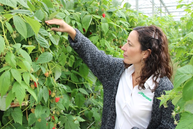 Sin embargo, el tema estrella sigue siendo la facilidad de recolección. Elisa Pérez, responsable de mejoramiento de Planasa, explica las claves: "Seleccionamos tres características específicas para mejorar la facilidad de recolección. En primer lugar, la estructura de la planta: las frambuesas cuelgan a la vista y no se ocultan tras ramas u hojas. En segundo lugar, el tamaño: las frambuesas son relativamente grandes, lo que también las hace más fáciles de recolectar. En tercer lugar, y quizá el factor más importante, está la adherencia de la frambuesa a la planta. Esta es menos fuerte que en otras variedades, lo que facilita el desprendimiento del fruto durante la recolección".