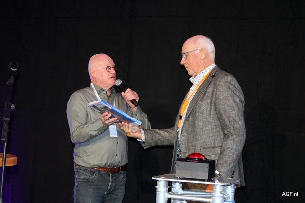 Huib van der Wal ha elaborado un libro sobre las soluciones de paletización de Verbruggen. El jueves se entregó el primer ejemplar a Alex Verbruggen.