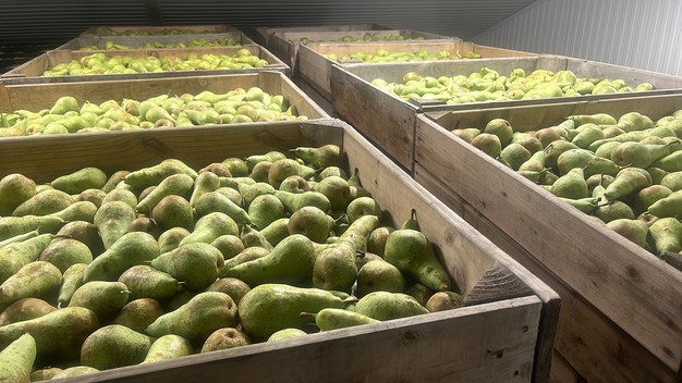 "Antes de la recolección, tuvimos un periodo seco. En algunos lugares, esto acabó provocando estrés por sequía en el campo. Las peras afectadas no adquirieron el tamaño adecuado y su vida útil también está en entredicho. Muchas de estas y otras peras cosechadas al final del periodo de recolección deberán comercializarse a corto plazo. Esto, en combinación con la situación arriba mencionada, ha provocado bastante estrés en el mercado", asegura Randy. "Para empeorar aún más las cosas, ha habido algunas mermas en el comercio con Europa debido, entre otras cosas, a amenazas de carácter militar. Como resultado, los precios de la Conferencia se han situado en mínimos históricos. No esperábamos acabar comercializando peras a estos precios, pero, por desgracia, eso es justo lo que ha ocurrido".