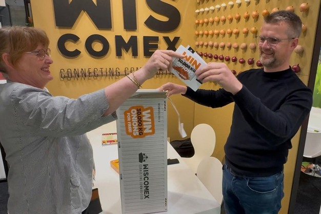 "¿Quién se llevará gratis un contenedor de 30.000 kg de cebollas amarillas?". Tras la Fruit Logistica de Berlín, Wiscomex decidió organizar un nuevo sorteo en la Fruit Attraction de Madrid. Todos los importadores de cebollas que visitaron el stand tuvieron ocasión de introducir su tarjeta de visita en el contenedor para optar a ganar este premio especial.