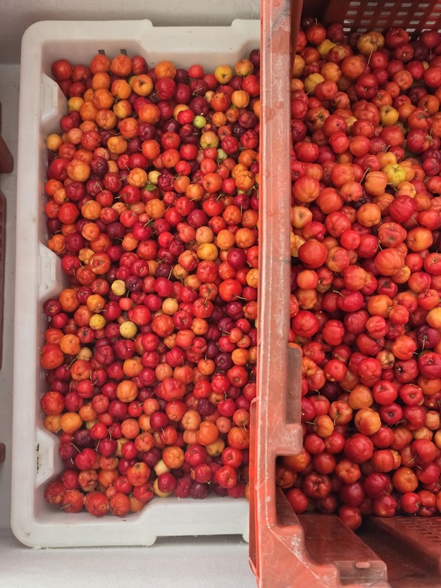 Las acerolas recién cosechadas se lavan cuidadosamente antes de su comercialización. Adit las suministra en paquetes de un kilo a productores locales de zumos y en forma de pulpa congelada o incluso en porciones del tamaño de cubitos de hielo a supermercados. Adit tiene un cliente en Alemania que compra contenedores completos de pulpa congelada. "Actualmente tengo capacidad para enviar dos contenedores al año, pero tras la ampliación de la superficie mi objetivo es llegar a uno al mes. Y aunque Estados Unidos también me tira de la manga, primero me centraré por completo en el mercado de la UE".