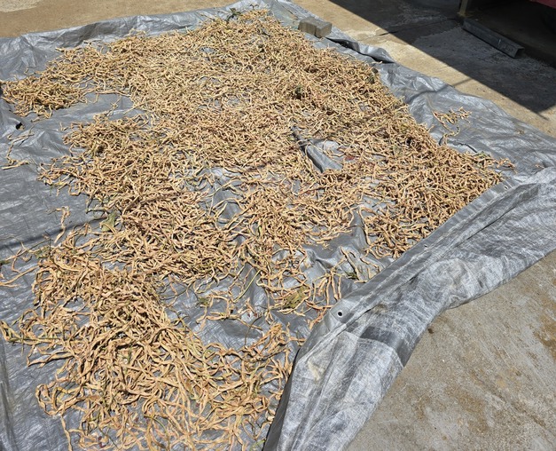 Las judías de 1 metro (kousenband) se están secando. De la verdura seca se sacan las semillas para la próxima cosecha.
